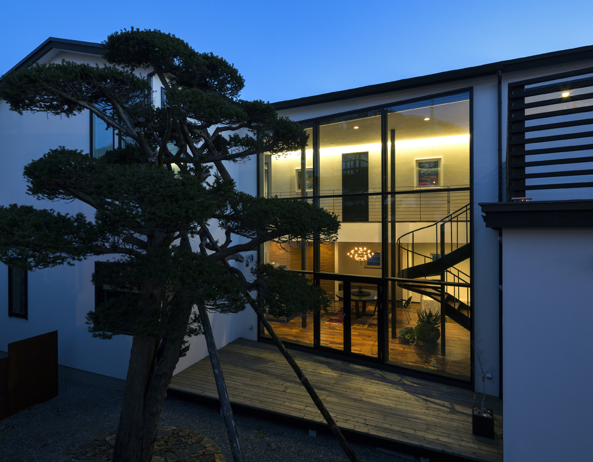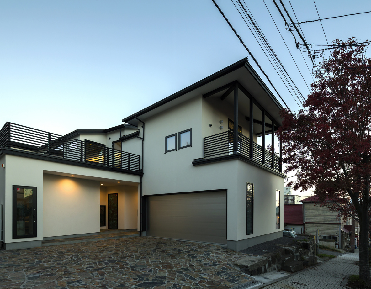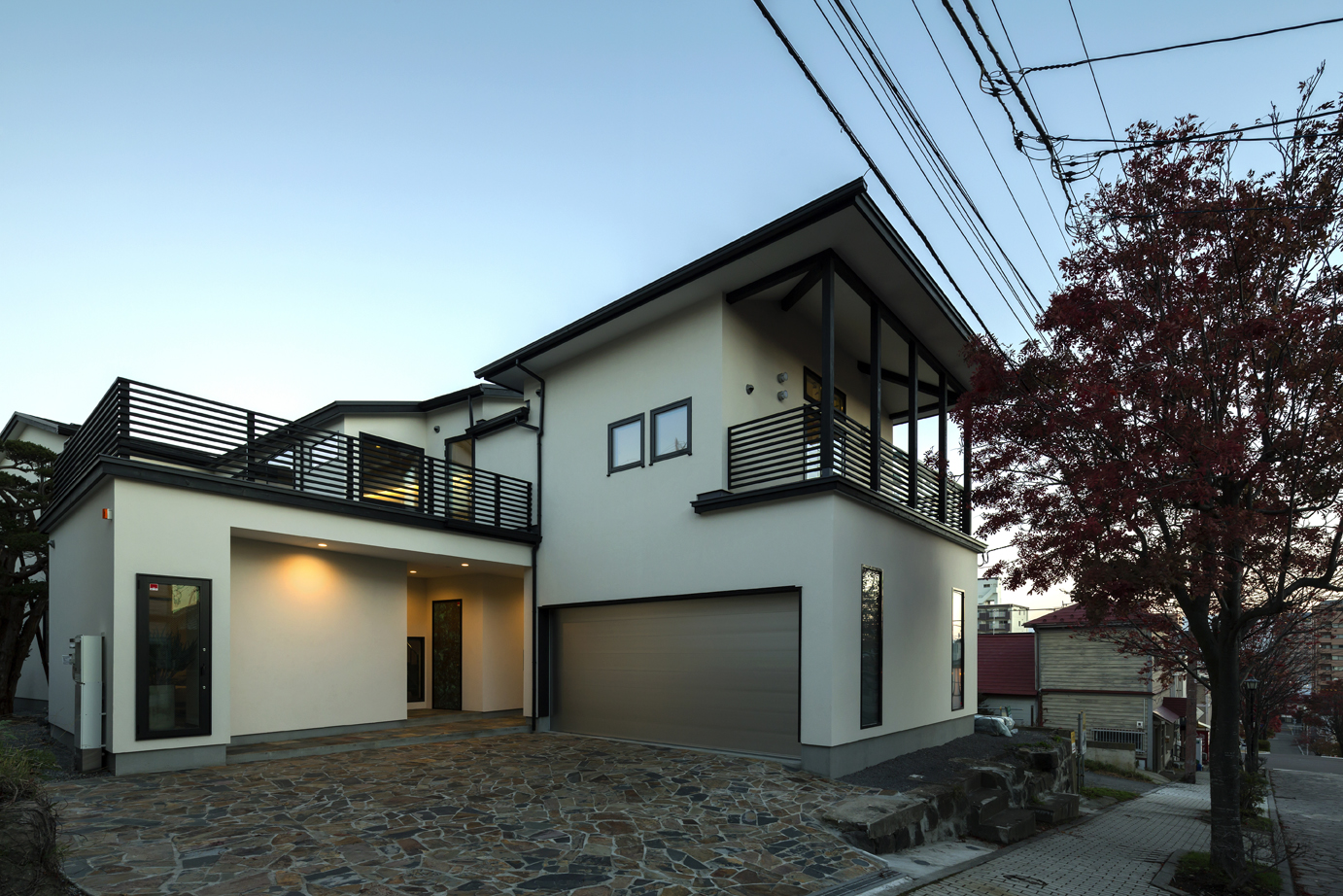 クライアントは、函館のこの地域の雰囲気を気に入り移住を決めた。景観保全の為の市条例等の制限も、ここに居を構えるならば受け入れることは、当然のことだったのかも知れない。最初は新進気鋭なデザイナーが作り出すような斬新な外観を希望していたが、次第に落ち着きのあるかたちへシフトして行った。