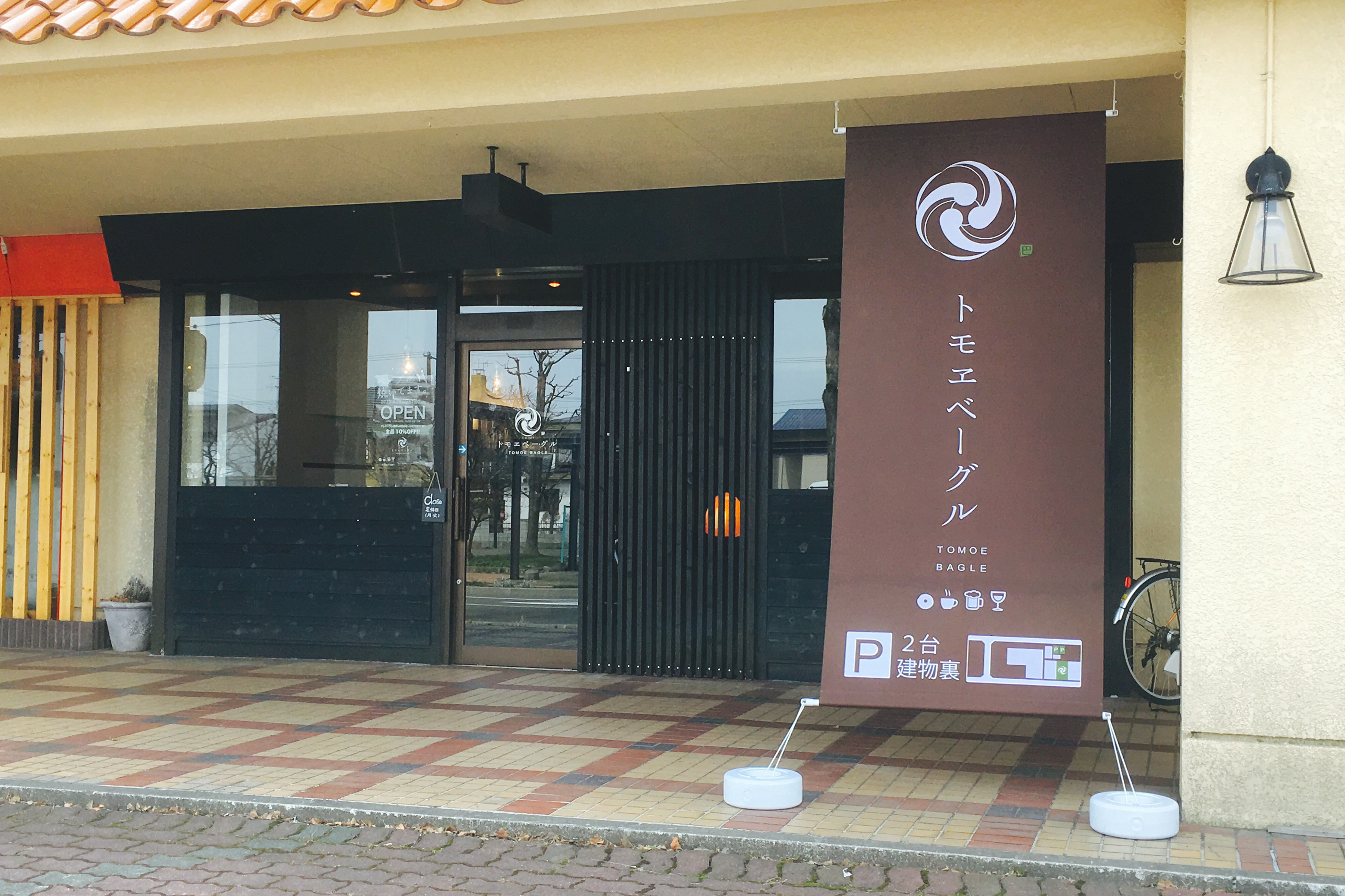 恵庭市恵み野駅前商店街のメインストリートに面するアケード街に、ベーグル屋さん、「トモヱベーグル」をロゴ等のブランディングも含め設計した。