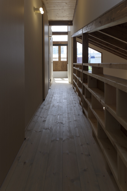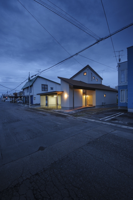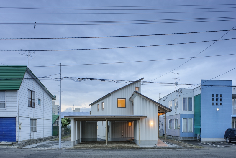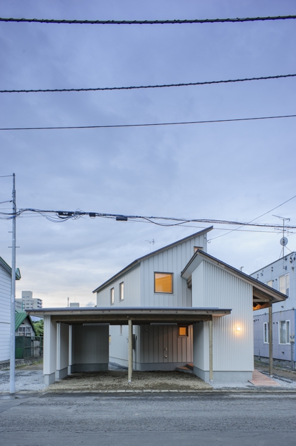 旭川の住宅地にある敷地。両隣は境界近くまで二階建ての外壁がせまっていて、窓等を設けたり何らかのコミュニケートするには不向きであった。敷地の奥の方が開けていて落ち着きも良かった。