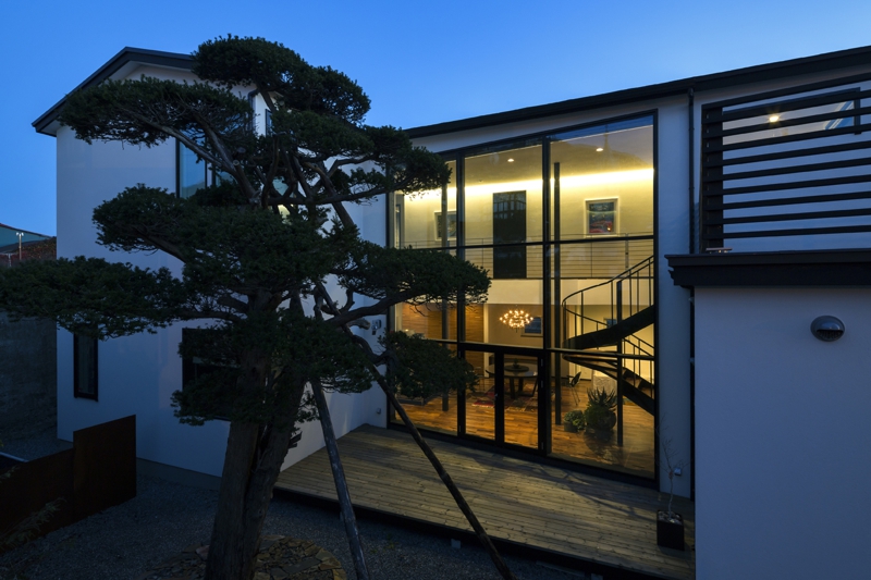 クライアントは、函館のこの地域の雰囲気を気に入り移住を決めた。景観保全の為の市条例等の制限も、ここに居を構えるならば受け入れることは、当然のことだったのかも知れない。最初は新進気鋭なデザイナーが作り出すような斬新な外観を希望していたが、次第に落ち着きのあるかたちへシフトして行った。